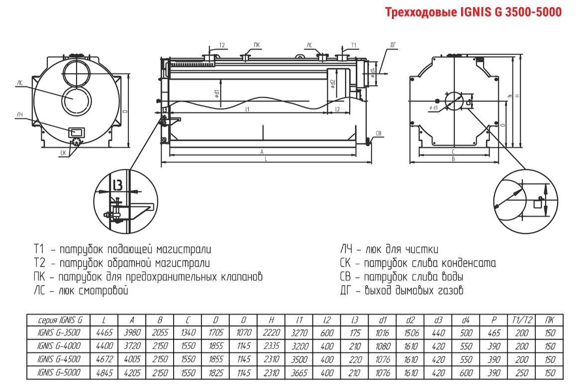 Технические характеристики водогрейного трёхходового котла ARCUS IGNIS G-4000